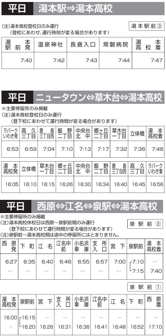 ●運行時刻は登下校時の時間帯のみ記載しております。路線によっては日中時間帯にも運行しております。